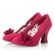 Our bestselling classic court shoe CHRISSIE is back in fuchsia pink. With faux suede accentuated by a delicate overlaid lace-on-satin band and matching flower corsage, and lined with a pretty polka dot. The scalloped detail is flattering and elegant with shaped Louis mid-heel to offer height along with stability.