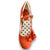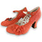Our bestselling classic bar shoe LYNN is back in summery coral. With faux suede accentuated by a delicate overlaid lace-on-satin band and matching flower corsage, and lined with a pretty polka dot. The scalloped detail is flattering and elegant with shaped Louis mid-heel to offer height along with stability.