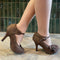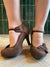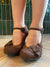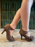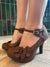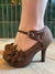Faux suede MELINDA occasion shoes feature a satin on lace collared heel panel and band, with a sweet flower corsage on our classic stiletto heel. Chocolate brown is perfect for upcoming weddings and special occasions. Ruby Shoo MELINDA matches perfectly to bag style TIRANA