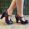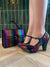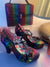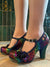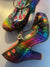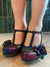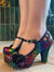 You love the T-bar with platform on Valerie for glamorous wearability. In glistening rainbow fan print and with a speckled multi-coloured heel and platform. With a 'Ruby Shoo worthy' fabulous floral print lining, and featuring a trio of sweet flowers, Ruby Shoo VALERIE matches perfectly to Ruby Shoo bag style MALIBU