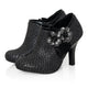 Simple lines and luxurious materials combine in stiletto shoe-boot JUNO for maximum drama. In a rose brocade framed in glittering faux reptile, JUNO features a zip and an elastic panel for ease of wear. Ruby Shoo JUNO matches perfectly to bag style MALIBU