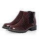 The RONNI boot, on a chunky, flexible sole, combines style and comfort. In glossy brown patent, faux pony and lizard effect emboss, and featuring an inner zip and elastic panel, Ruby Shoo RONNI matches perfectly to bag style RIVA.