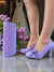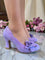 Our bestselling classic court shoe CHRISSIE is back in pretty lilac. With faux suede accentuated by a delicate overlaid lace-on-satin band and matching flower corsage, and lined with a pretty polka dot. The scalloped detail is flattering and elegant with shaped Louis mid-heel to offer height along with stability.