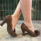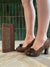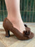 Our bestselling classic court shoe CHRISSIE is back in rich chocolate brown With faux suede accentuated by a delicate overlaid lace-on-satin band and matching flower corsage, and lined with a pretty polka dot. The scalloped detail is flattering and elegant with shaped Louis mid-heel to offer height along with stability.