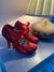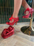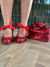 Our shoes being featured in Wicked inspired us to go SPARKLY with these sequin beauties! Popular hi-cut court shoe WILLOW's glistening red uppers are trimmed with a pretty scallop edging and feature statement ribbon ankle ties. Quirky kitch 'women of the world' print is both fun and a nod to our woman owned, women empowering brand. Ruby Shoo WILLOW matches perfectly to Ruby Shoo bag style HOLLYWOOD