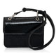 PENNY, in deep black faux leather and velvet, features sweeping lines and curves, set off by a pretty floral insock and finished with a cute decorative twin button detail. Fastening with a hook and loop closure, Ruby Shoo PENNY matches perfectly to bag style TOLEDO