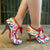 Shh! Don't tell everyone! Just for online customers, here is fan-favourite WILLOW in a stunning floral print, trimmed with deep red and bold orange. WILLOW features statement ribbon ankle ties and contrasting polka-dot linings. Classic leather heels complete the retro look. WILLOW matches perfectly to Ruby Shoo bag style ALBERTA. This style features stacked leather heels.
