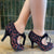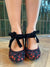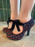 Popular hi-cut court shoe WILLOW's bold red and black polka dot velvet uppers, trimmed with a sweet red scallop edging, feature statement velvet ribbon ankle ties. Red and black satin polka-dot linings complete the retro look. WILLOW matches perfectly to Ruby Shoo bag style ALBERTA.