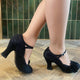 Our bestselling classic court shoe CHRISSIE is back in rich noir black. With faux suede accentuated by a delicate overlaid lace-on-satin band and matching flower corsage, and lined with a pretty polka dot. The scalloped detail is flattering and elegant with shaped Louis mid-heel to offer height along with stability.
