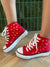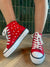 The ultimate in comfort and quirky style, platform soled basketball style boot CASSIE features classic red and white polka dot print. Team her with a 50s style dress or dress her down with jeans, your feet will love you all day!