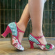 Cross body bag DUBLIN combines contrasting gingham, floral print and faux suede in a practical but elegant bag with magnetic fastening and detachable fabric shoulder strap. Simply unclip the strap for a capacious clutch bag. Ruby Shoo DUBLIN matches perfectly to shoe style IMELDA