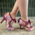 Popular hi-cut court shoe WILLOW's stunning floral velvet uppers, trimmed with a pretty scallop edging, feature statement ribbon ankle ties. Dainty floral linings complete the look. Ruby Shoo WILLOW matches perfectly to Ruby Shoo bag style MALIBU